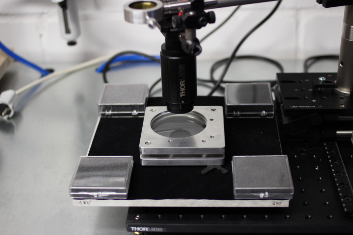 Während der Messungen werden immer zwei Referenzspiegel im gleichen Messaufbau mit vermessen. Um mögliche Messfehler durch die Veränderung des Aufbaus zu minimieren, werden lediglich die Spiegel gegeneinander ausgetauscht.