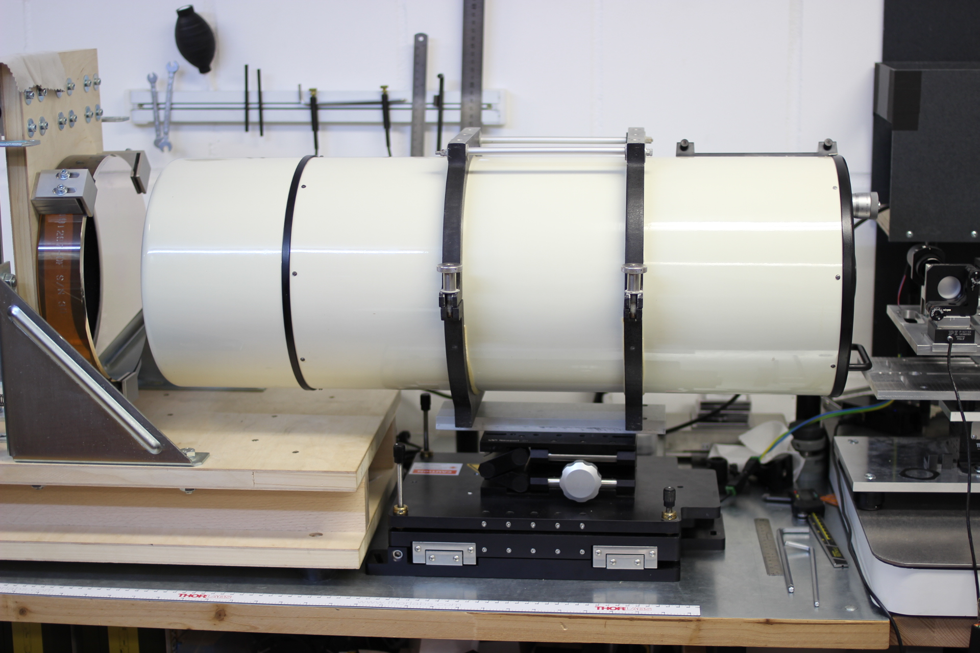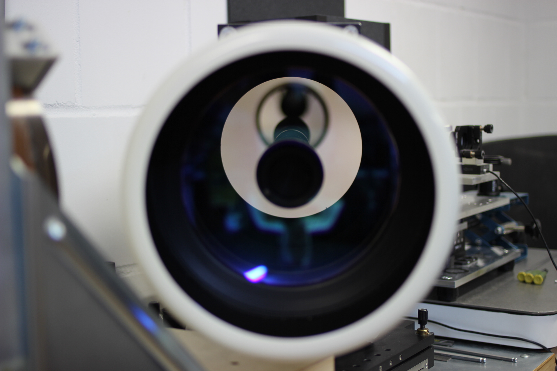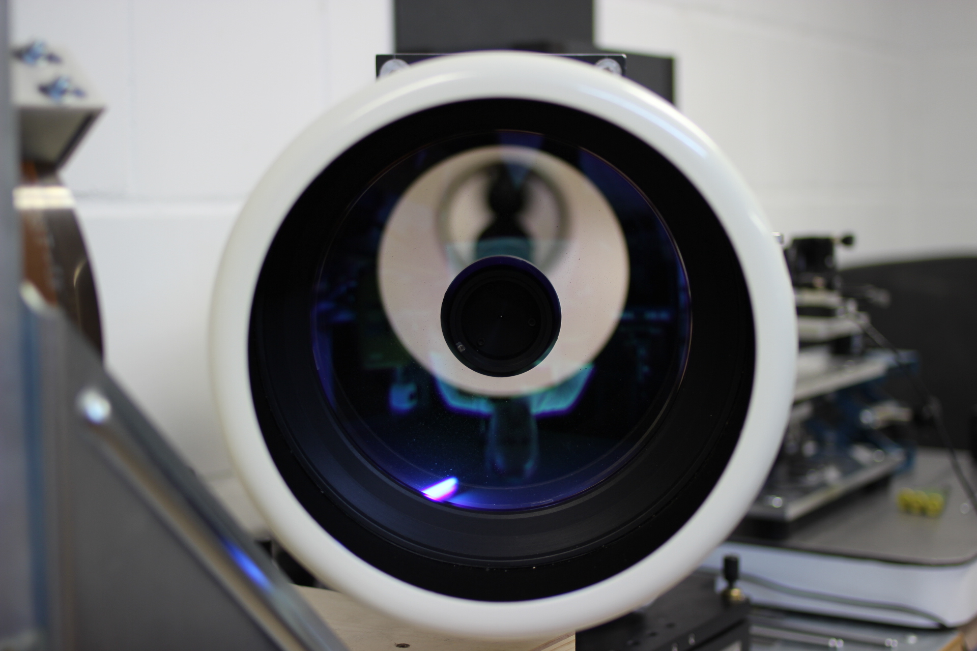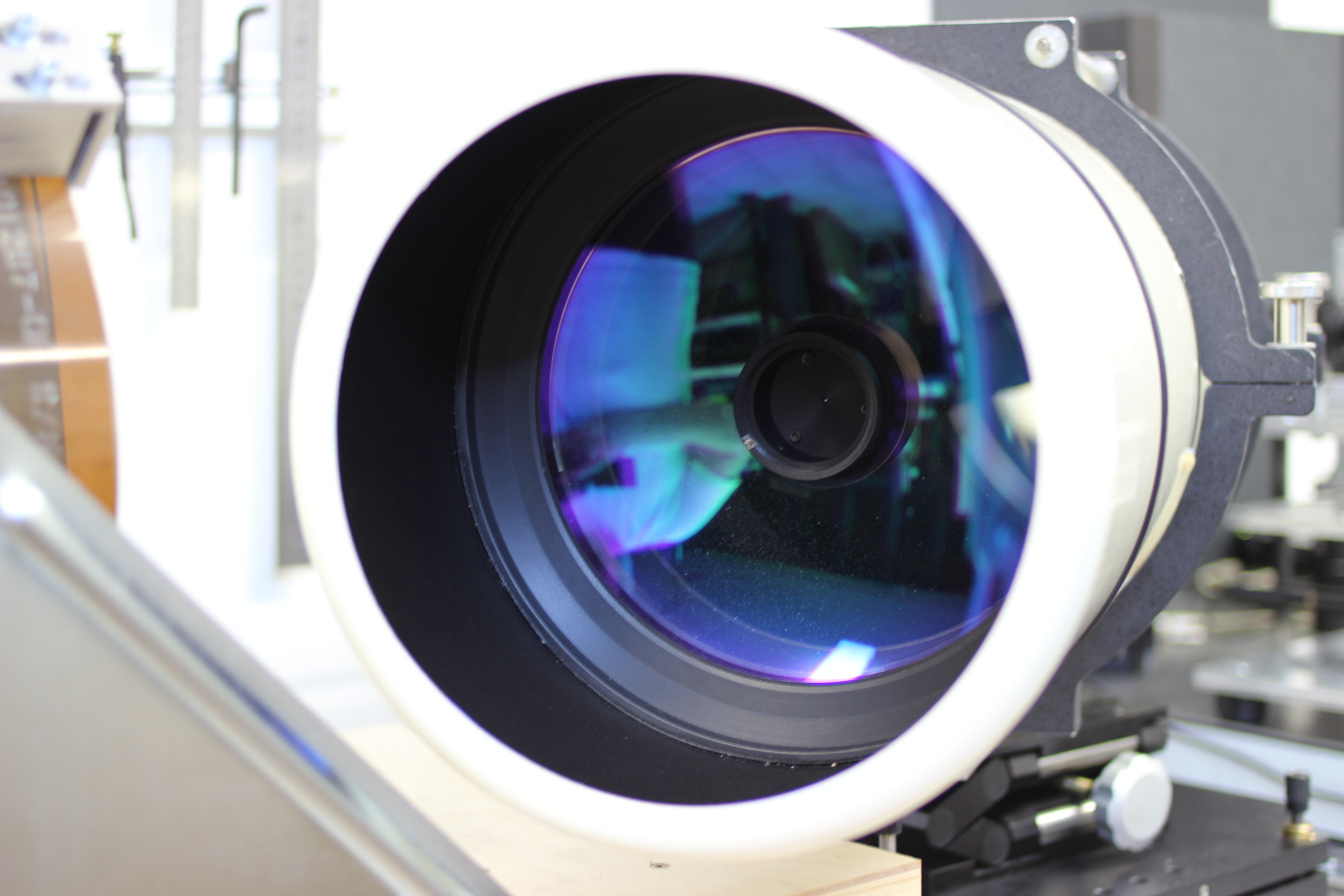 Hauptspiegel und Fangspiegel wurden von uns vor den Messungen neu justiert. Der Tubus ist innen sehr gut geschwärzt. Das Blendrohr ist innen und außen sehr gut geschwärzt. Das Gerät verfügt über eine angebaute Taukappe von ca. 15cm Länge.