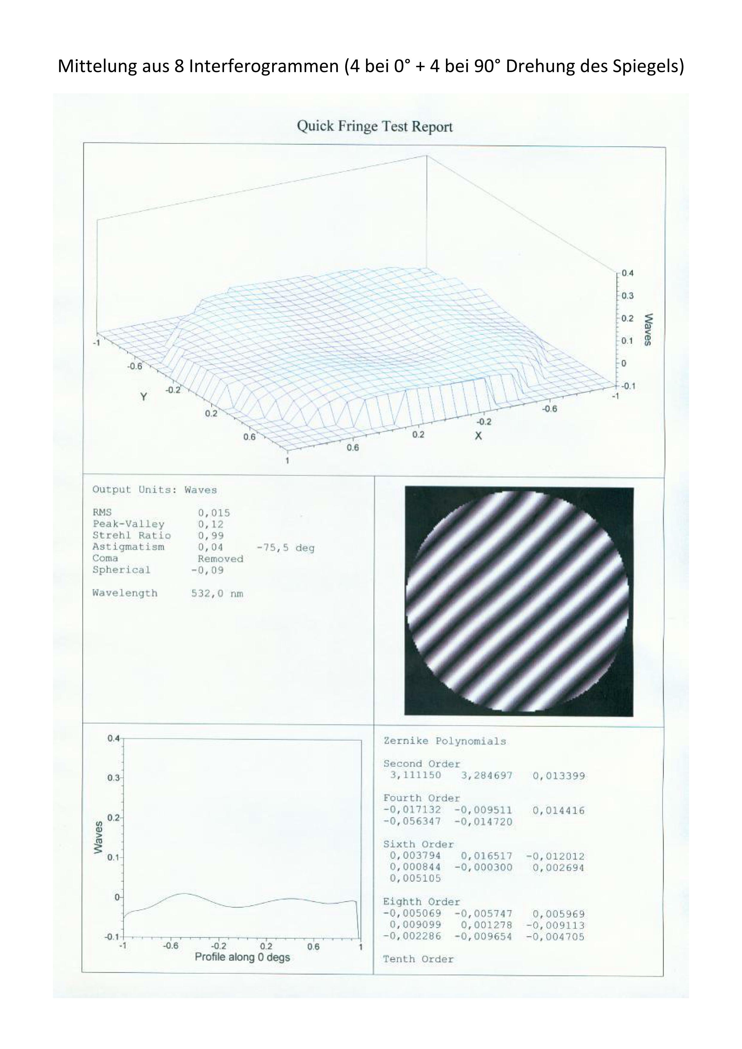 Der Spiegel wurde von Daniel Restemeier, dem Eigentümer der Firma Nauris angefertigt, um seine eigenen Messungen anhand eines extern erstellten Prüfprotokolls zu überprüfen. Zur Messung hat er den Spiegel dann uns überlassen. Wir freuen uns einen so gut gelungenen Spiegel hier auf unseren Seiten anbieten zu können.