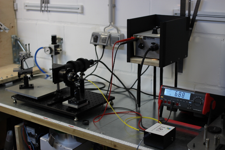 Als Lichtquelle wird eine geregelte Halogen-Kaltlichtquelle eingesetzt, deren Stromstärke mit einem guten, digitalen Multimeter überwacht wird. So wird sichergestellt, dass die Lichtstärke der Quelle während der Messungen konstant gehalten werden kann.