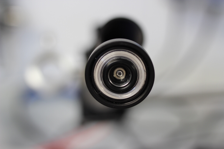 Um hohe Messgenauigkeiten zu erzielen setzen wir deshalb verschiedene Positionierer ein. Um den Abstand der Sonde zum Prüfling genau einstellen zu können wird die Sonde am Ende eines Längspositionierers eingeschraubt. Die Länge kann mittels Drehung der Griffhülle des Positionierers fein eingestellt werden.
