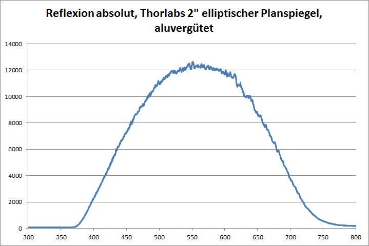 Folgend einige Reflexionsmessungen im oben beschriebenen Aufbau. Als Referenz für die relative Auswertung dient der dielektrisch beschichtete, elliptische Planspiegel von Thorlabs.