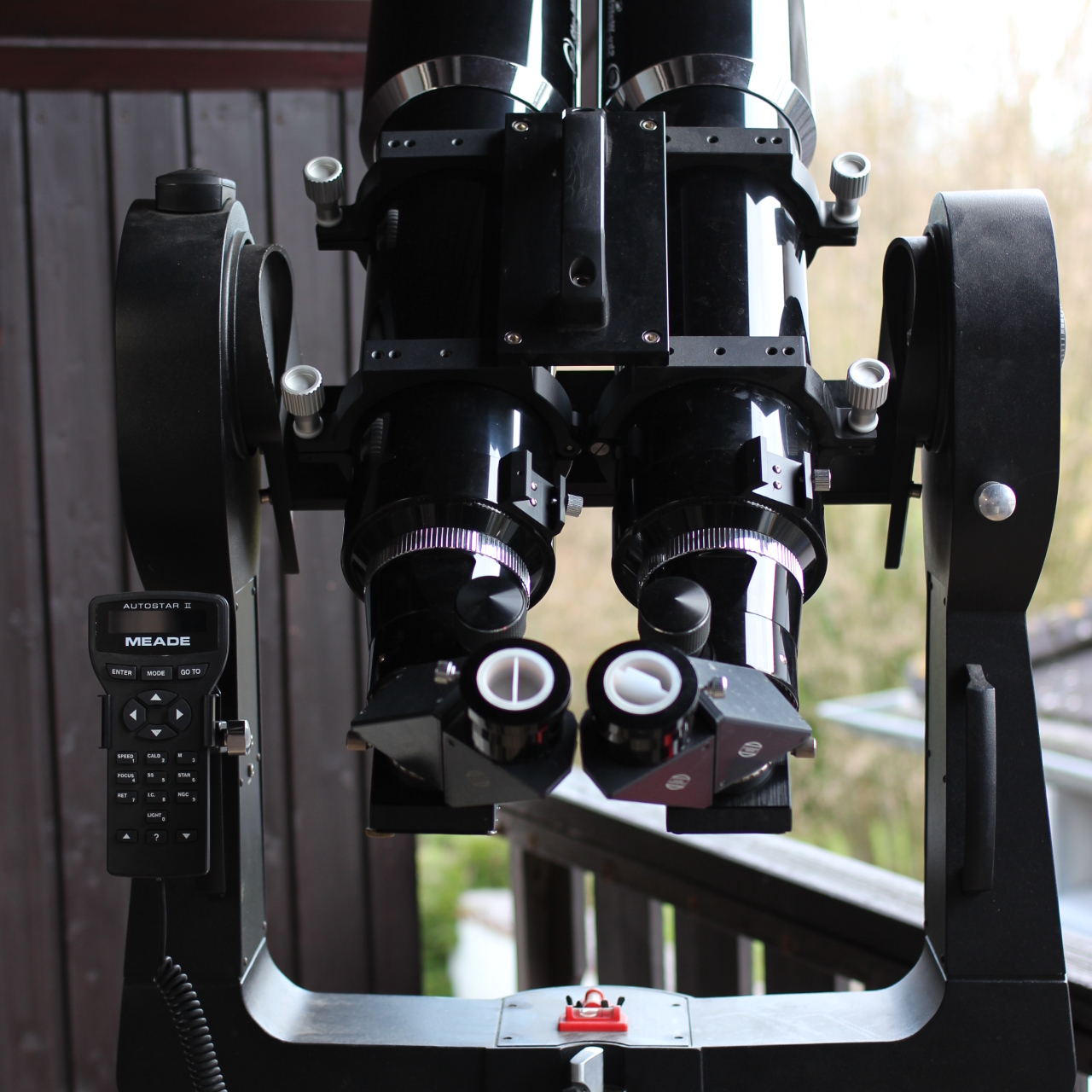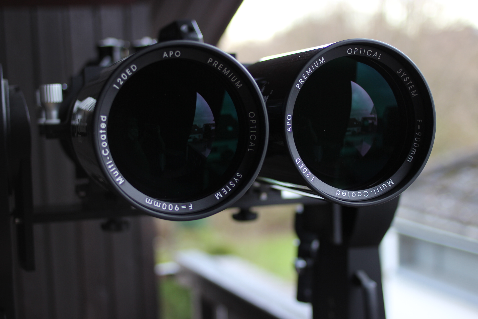 Der Doppelrefraktor besteht aus 2 Skywatcher Equinox ED 120F7,5 Refraktoren, die von der deutschen Firma Astro-Mechanik Mitte des Jahres 2010 zu einem Doppelrefraktorsystem umkonstruiert wurden.