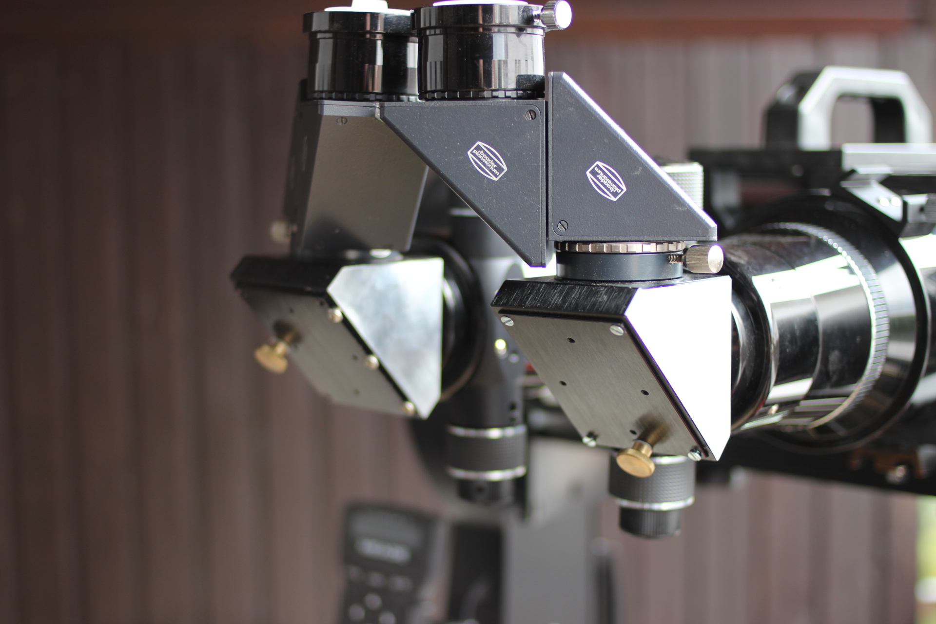 Dabei wurden die Tuben entsprechend gekürzt und an den Übergängen Tubus-Okularauszug mit massiven Aluminiumringen verstärkt. Die gesammte Konstruktion ist sehr massiv und lässt ohne Probleme Vergrösserungen über 250x zu.